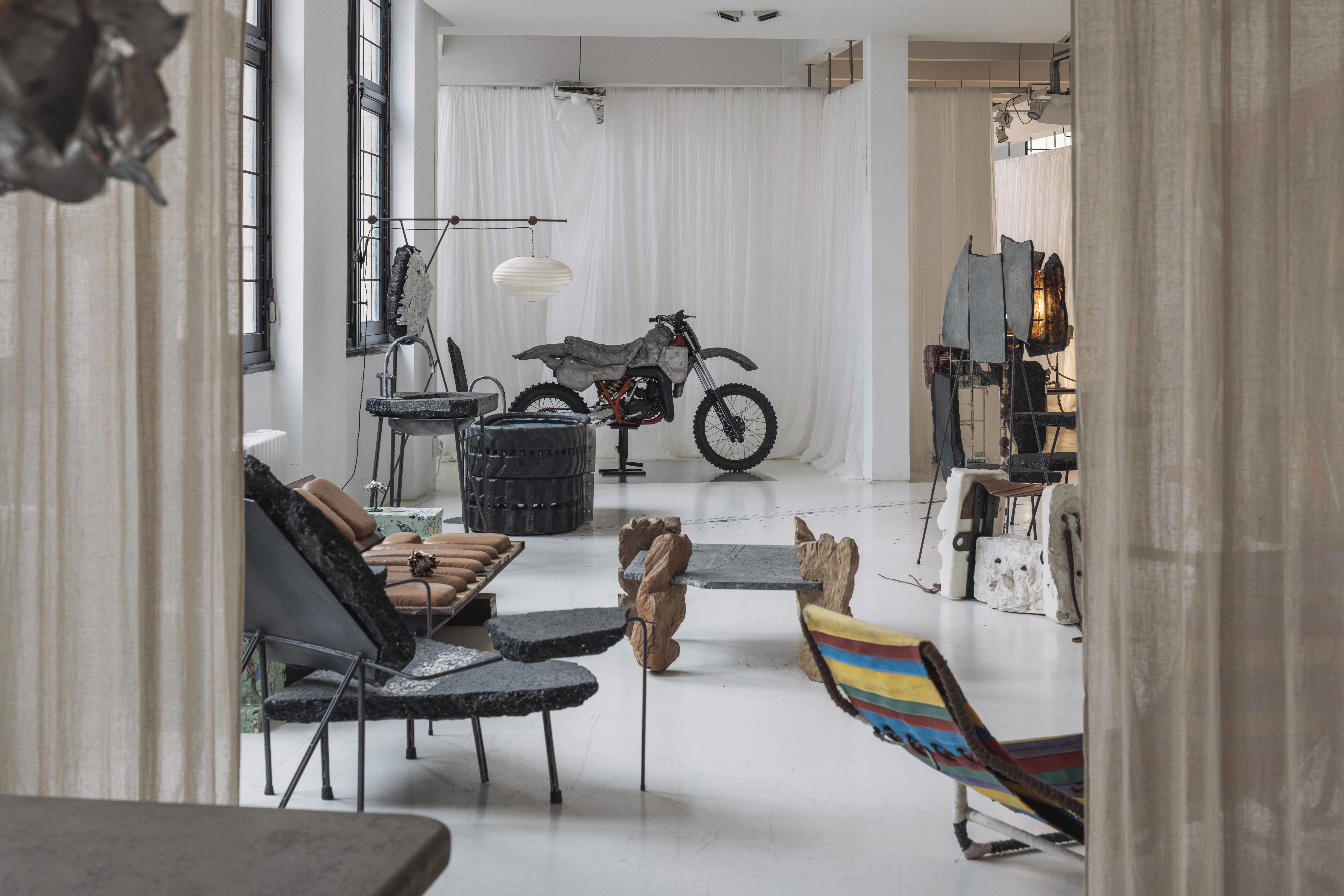 He operates through two complementary structures. Atelier Lionel Jadot is his experimental workshop where sculptural and functional objects are created through reuse and radical craftsmanship. Studio Lionel Jadot is his architectural practice where interiors are shaped to feel lived and textured, translating the raw energy of the atelier into spatial environments.