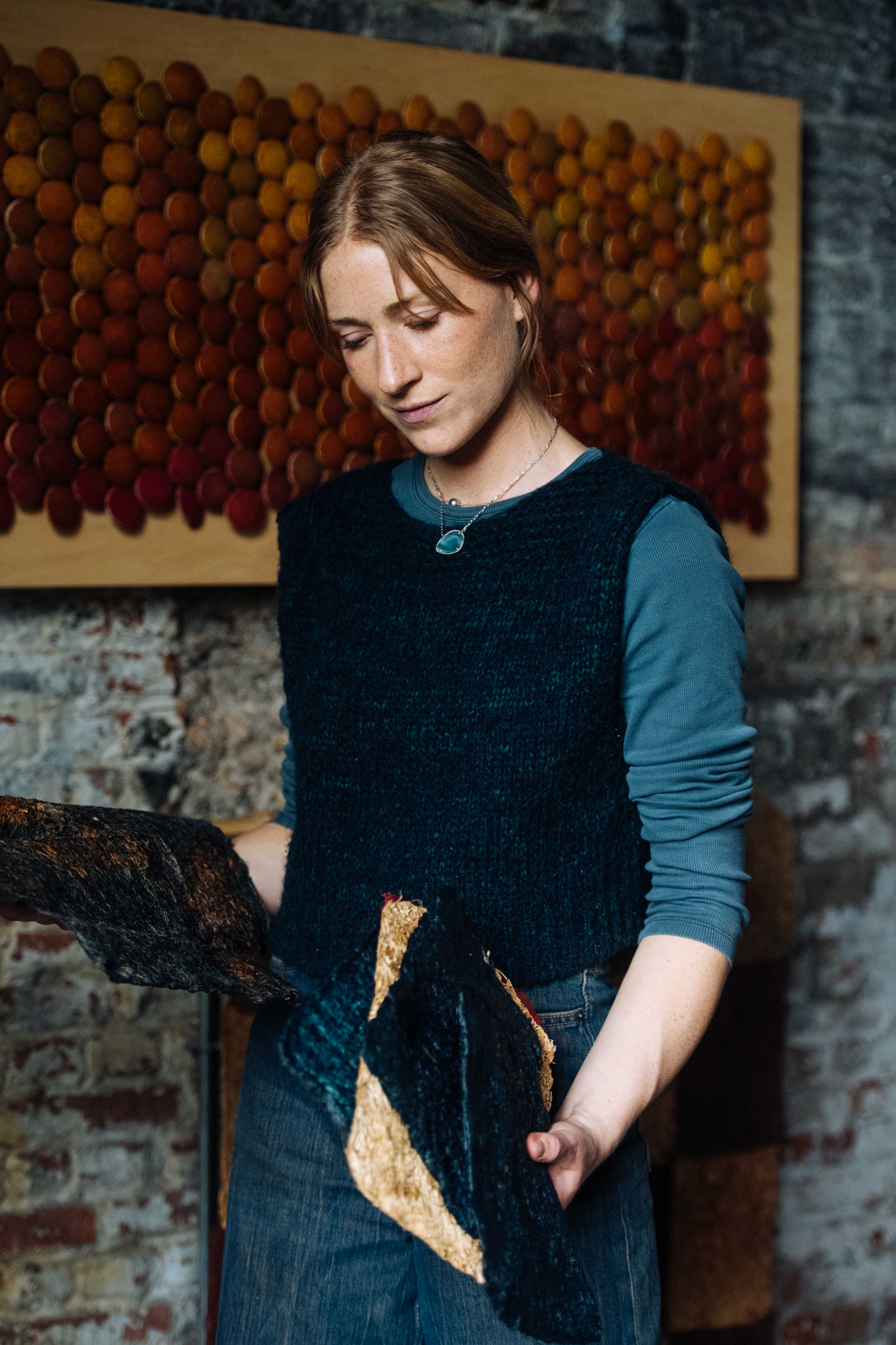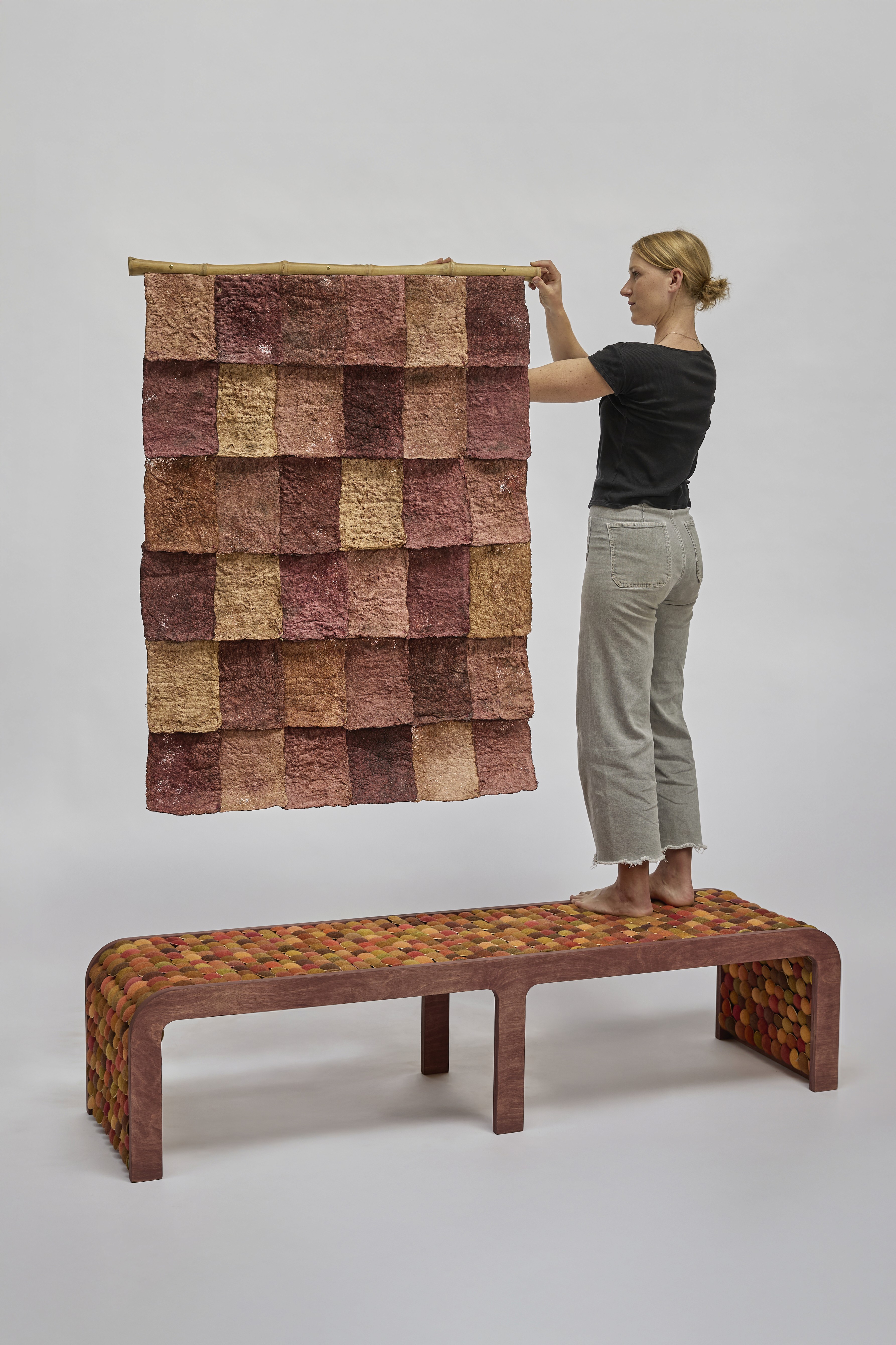 Her approach is grounded in circular design, creating products with full lifecycle awareness. Mathilde focuses on regenerative materials, sourced from waste or biological processes, while exploring their sensory impact. She believes design should engage all senses, including touch, sight, sound, and smell, to foster deeper emotional connections with objects.