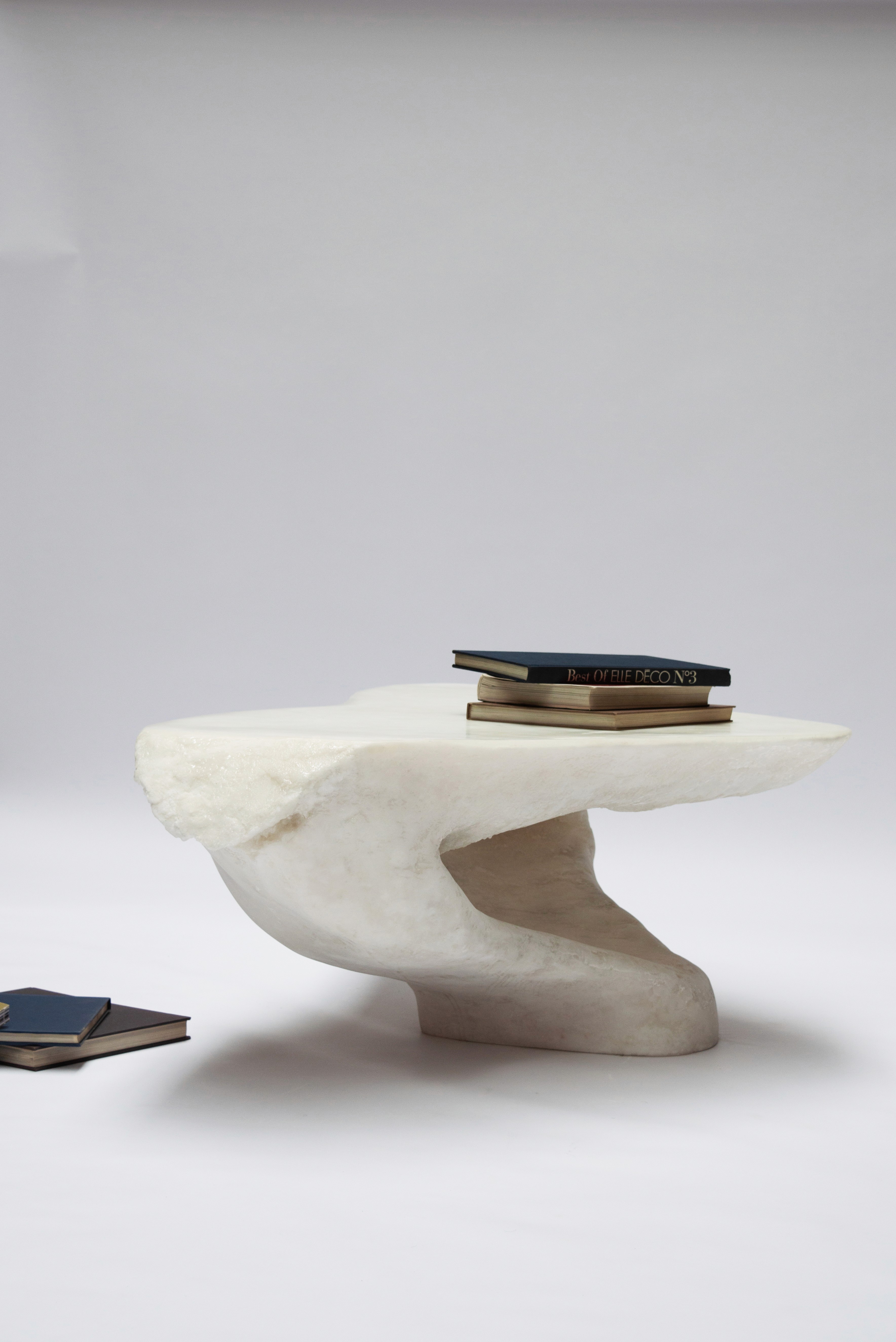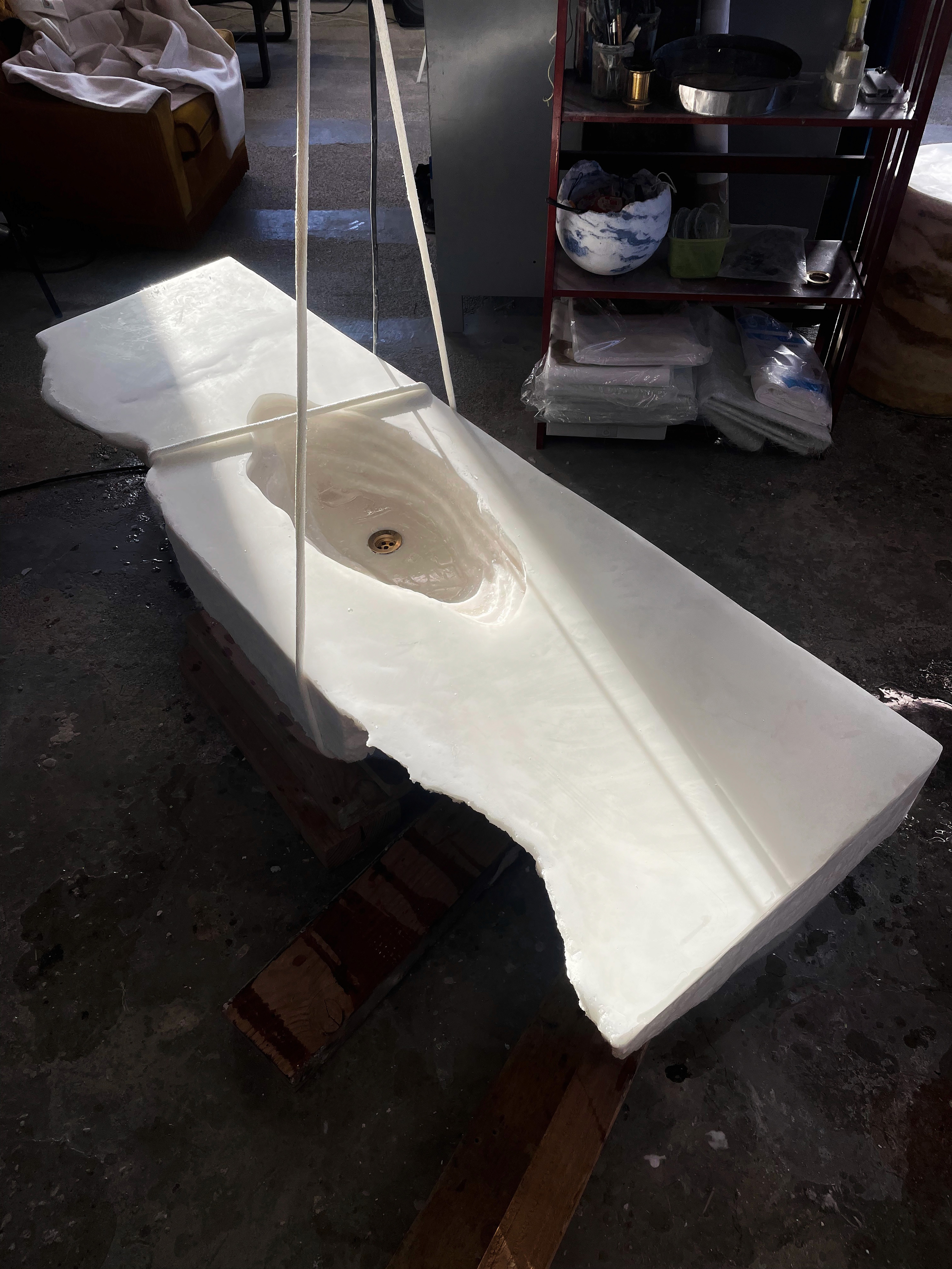 Describing her process as an alchemical journey, she develops her own methods of transformation and molding, often blending low-tech approaches with traditional craftsmanship.