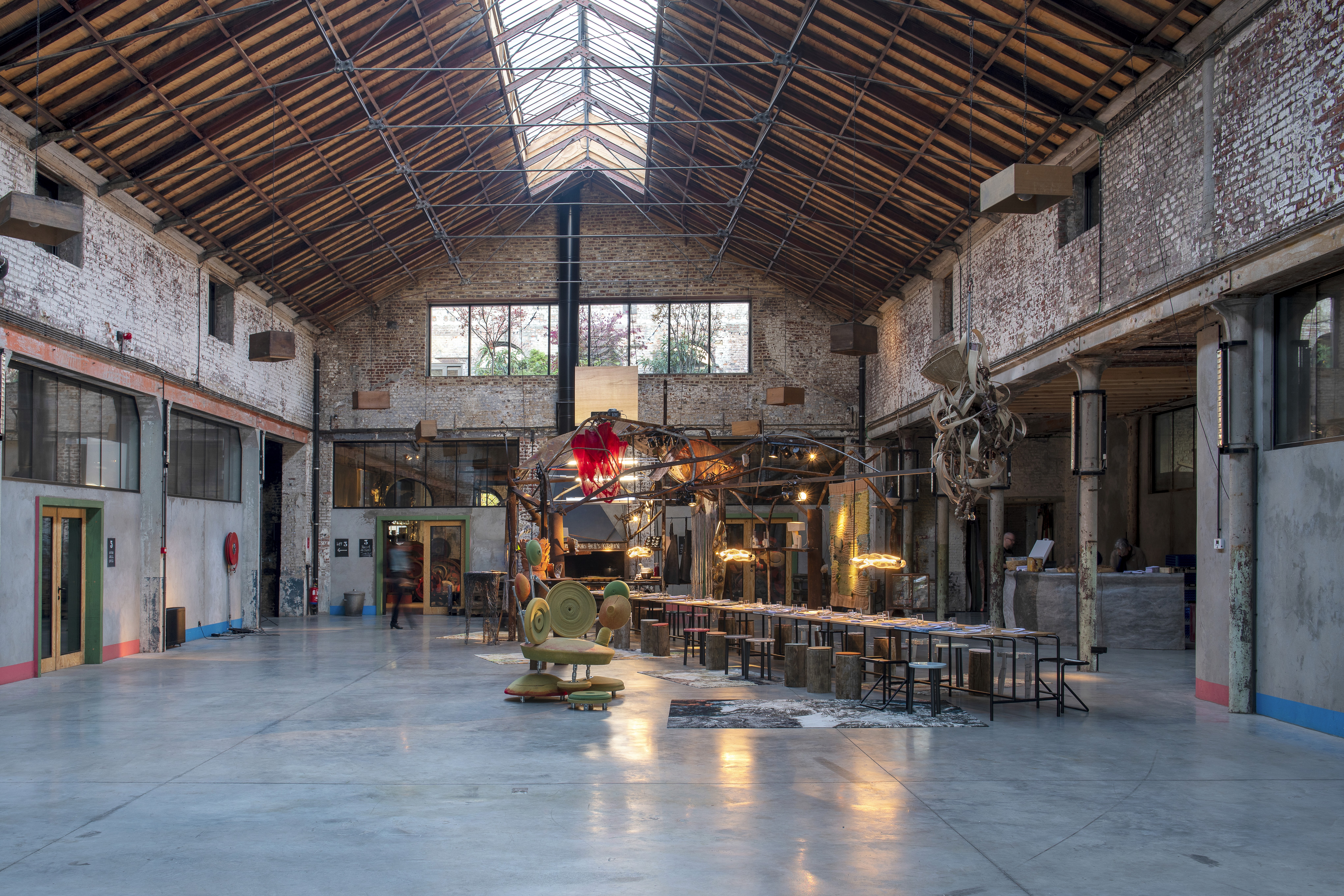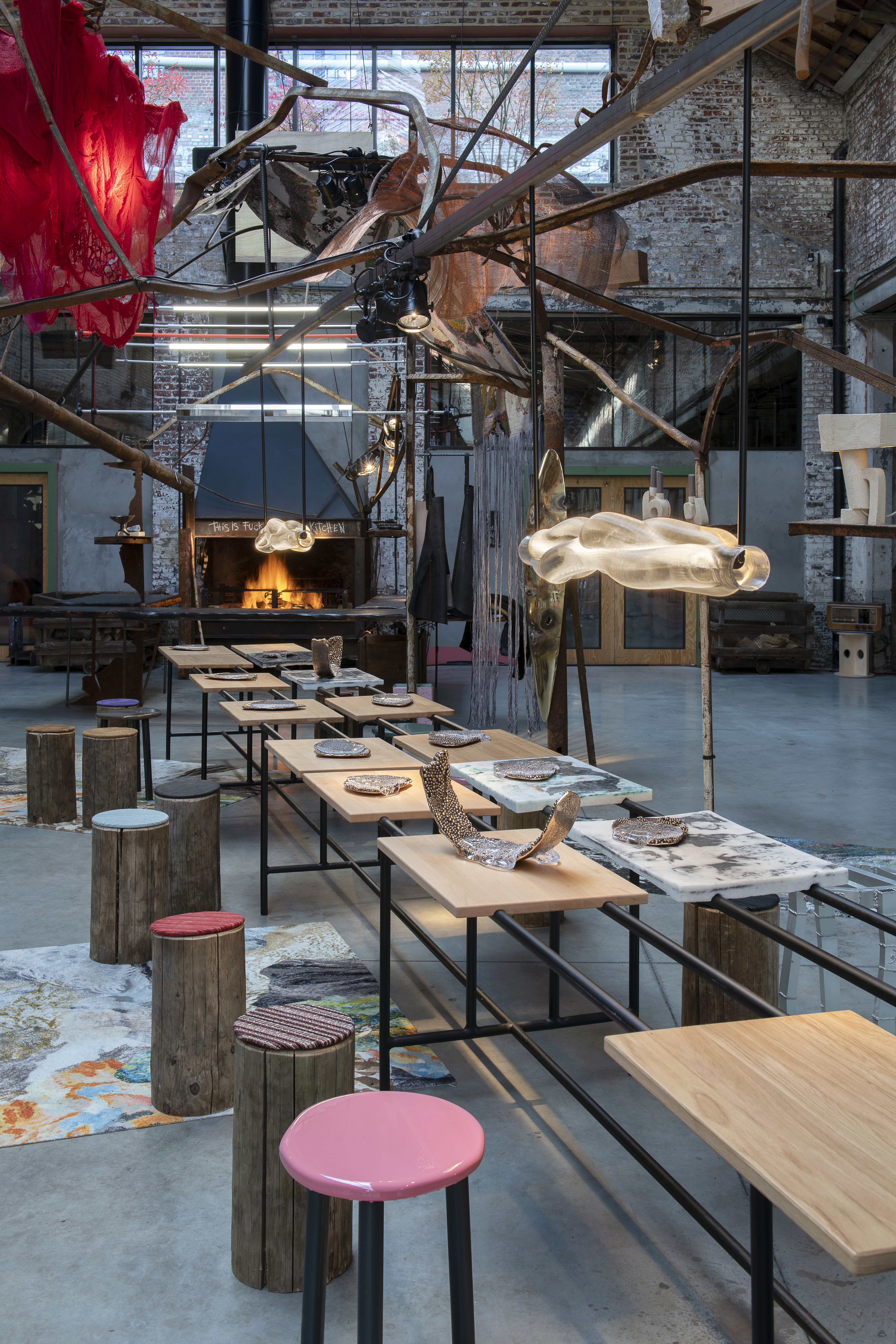 Throughout the event, renowned chefs such as Willem Hiele were invited to cook over open flames at the heart of the hall. Their craft unfolded in real time, surrounded by objects and settings created by the residents of Zaventem Ateliers. Every detail, from the architecture of the fire pits to the bespoke tools and tables, was imagined and fabricated on site.