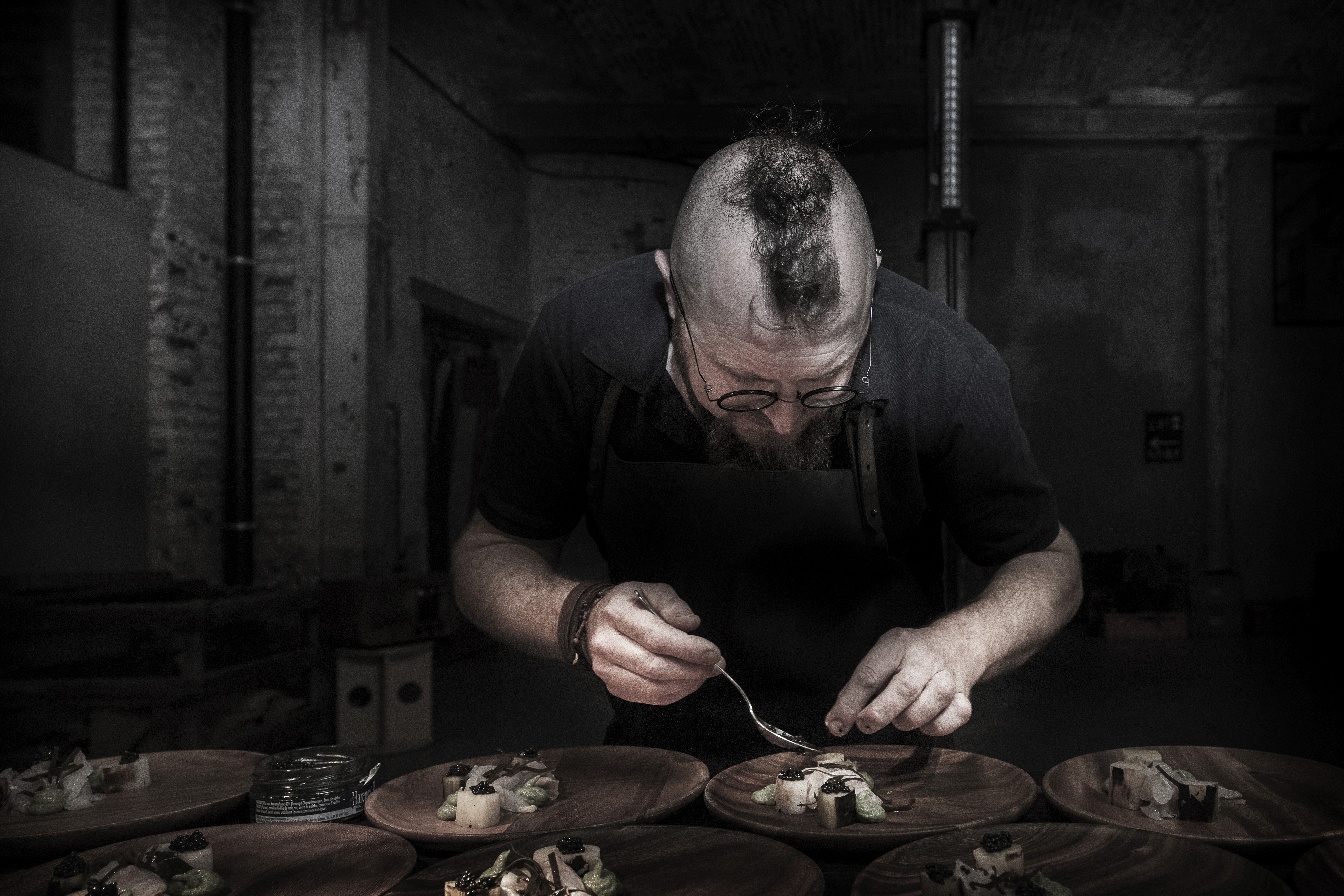 Hell’s Kitchen was conceived as a living installation inside the monumental Grand Hall of Zaventem Ateliers. For this project, the Ateliers designed and built a complete scenography, transforming the raw industrial space into a stage where food, fire and design converged.